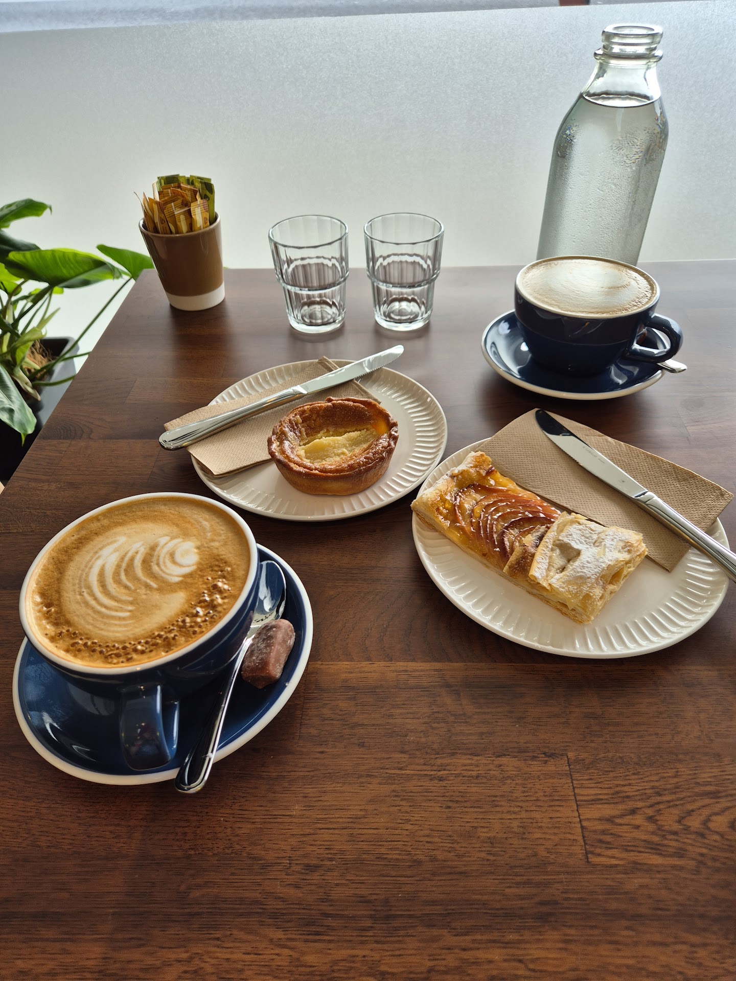 My wife particularly enjoyed the ambiance, comfortably settling into her chair and appreciating the peaceful view outside. I ordered a coffee, which was excellent, accompanied by a delicious danish pastry and lemon cake that we took away and thoroughly enjoyed later at home. The café is run by a charming and welcoming couple who took the time to chat with us, making our visit feel personal and inviting.
