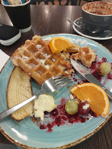 Read moreAte waffles with caremalized bananas, berry compote, mascaparone, whipped cream and fruit ($25), and a medium cappuccino ($5.50).