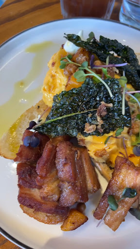 Amazing brunch food, truly lives up to its name! Couldn’t believe someone didn’t make a cafe called the breakfast club sooner, the owners of slow lane really saw the opportunity and took it, and I’m so pleased they made it a modern/US diner vibes, with a fantastic menu filled with all the goods you could ask for. My friend and I chose this to celebrate her last brunch in Auckland and boy did she make the choice. We ordered what’s basically the big breakfast and a sichuan egg style dish, they were very accommodating as I wanted some pork belly as a side that wasn’t apart of my dish. Everything was so delicious!! We also got a little something from cabinet as their croissants looked pretty yum. The strawberry filled berry croissant was delish!! Yum filling to croissant ratio. Pleased as, personally love this menu compared to slow lane but the seating and space of slowlane is more preferred. The breakfast club is super popular and the space is fairly small so can get cramped quite quickly but the team still makes it work. Yum yum keen to be back!
