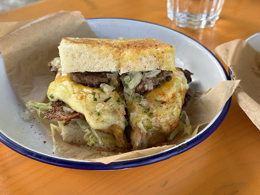 Quite and quaint sandwich bar/cafe. It's exactly what you want and need after a night out on the town. The location makes you feel at ease since Young George is set amongst residential homes. You won't be bothered by the usual fair of cafe goers here and can enjoy your brunch in peace. Coffee is beautifully made by someone who knows what they're doing. Sandwiches are equally as special and just as well made/presented. I had the beef sando, imagine it as the better more balanced version of a quarter pounder. There was just enough cheese and other condiments on the sandwich so as not to distract you from the main star of the dish, which was the juicy beef patty. The bread used was also top tier. Fluffly inside with a crunchy crust, what more could...