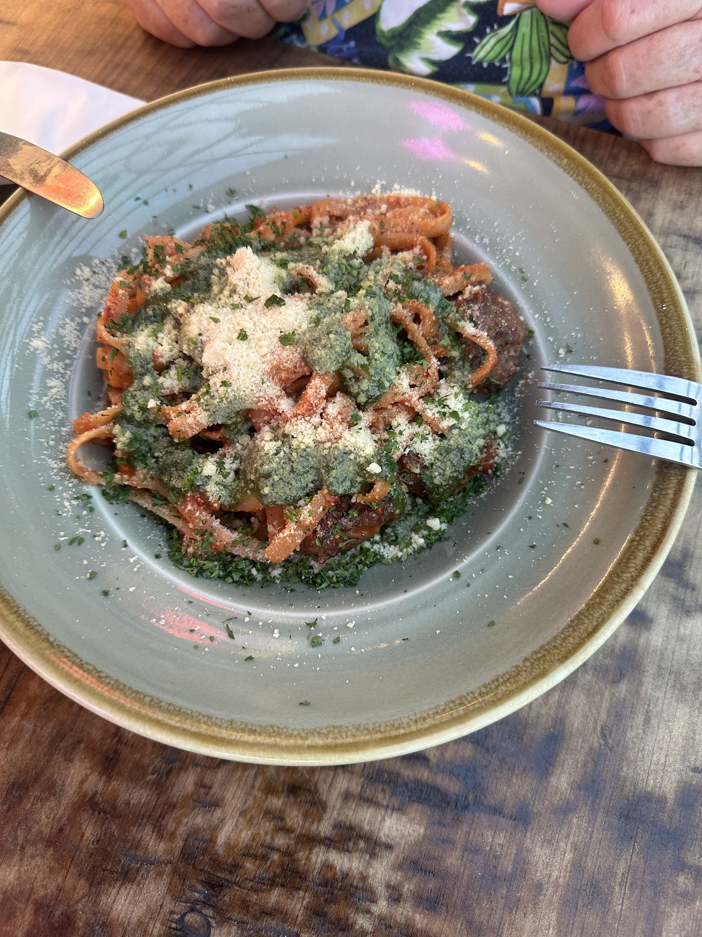 Drinks were nice but service was slow, can accept a holiday pace but this did feel like being on the outside tables meant we were kinda forgotten about.