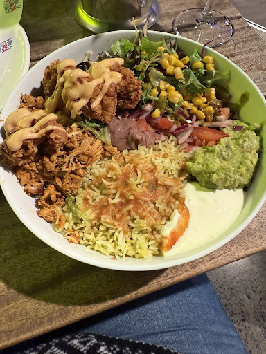 Ā Ā Ā Read moreThis restaurant had good vibes overall but was more of a Mexican inspired restaurant than Mexican which was disappointing to discover. The tables were tight together as well. The waiters were nice but didnāt explain that there was self serve water, hot sauce, and condiments. The drinks are not made by a bartender other than shaken. They have an auto pour machine that measures everything out. I had the pineapple margarita and it was not very sweet almost sour. We ordered the Chips and guacamole which wasnāt bad on flavor but had a misleading title to it. I would say it was more a chips and dip because you got 3 dips with it all with the same amount versus having more guacamole. The guacamole was also interesting it had the browning color to it and as it sat there it slowly started like separating almost like there was oil mixed in with it. The enchiladas I would say were definitely more of a play on enchiladas vs actual enchiladas. It was a taco covered in salsa and melted cheese. The flavor was good but not exactly enchiladas. The macho bowl was overall really good. Only thing is that the rice felt precooked like from a package. Also was surprised that there were 2 different types of chicken in it one was like shredded and then there was fried chicken. Which the description just...