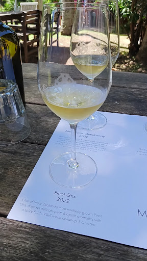 The best vineyard in Kerikeri. We came for a wine tasting and platter and were greeted by a big friendly sleepy dog at the front gate. Already that's rive stars for me.