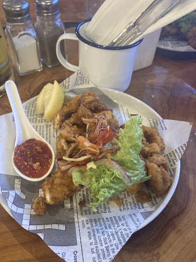 Read moreAs a local I was always keen to visit this venue as there appears to be a good thrust for business on Facebook. Admittedly it was a Monday lunchtime, but that should not be an excuse for poor service. On arrival there was a staff member folding serviettes at one of the main bar tables, at first she seemed reluctant to be disturbed but eventually poured me a handle. I picked up a menu from the Bar and went to the outside area. A table of 4 were served their food and i inquired of the waiting staff should i order from you, yes that's fine, anyway I ordered the Salt and Pepper Calamari, it arrived on a wooden platter, spread across some mayo and mild chilli sauce, adjacent to the very pale battered Calamari (which defied me to believe it had been cooked) was a pile of sliced iceberg lettuce, terribly stale complete with the brown rusty colour markings throughout. I did not complain as words are cheap and as a Google reviewer this avenue will give prospective diners a greater opportunity to decide whether they will eat there or give it a miss. What disappointed me even more was the special advertised on Facebook when I returned home, none of this was mentioned by the only staff member. Or so I thought, i was left standing at he Bar for a very long time when I went up for a refill, I did get a sorry, I did not see you there, of course not when you are hiding out of sight in the office. I do hope these reviews have an impact and the owner remedies these fault's after all it is my local and i would like to attend more regularly.