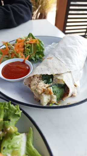 We have 'rediscovered' Alimento after hearing a new chef had introduced more gluten free options. Today's lunch was so delicious!!! I chose items I have not seen in any other café. ( There's always the same old gf options in most cafes involving eggs on toast, eggs bene, eggy quiches and you just get over it) I chose the gf chicken and bacon wrap and followed up with a gf muffin. The wrap was so delicious - it was very flavourful and the wrap was soft. The muffin was big.... it was so soft, moist and tasty. Best cafe meal I have had in a very long time and will probably become our regular lunch spot. Well done to the chef! The girls behind the counter, and who delivered our food were lovely and friendly. Lots of indoor seating as well as outdoors under umbrellas, or under the big established tree out front.