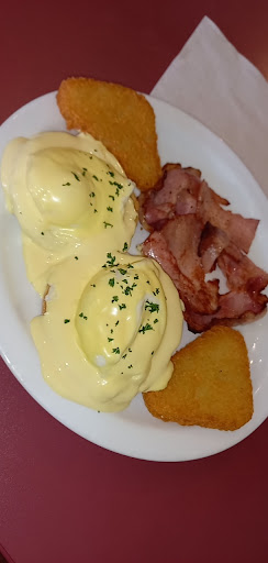 Sys' eggs benedict is my friend and I's go to breakfast as it's always yummy and very worth the price! Her and I get it at least once or twice a week. Today we went and were bombarded with flies for 30 mins while waiting (usually takes only 5-10 mins) for one plate to be brought to us with no sides (which are included) so we questioned and waited for our other plate to come. 15 minutes later I had to approach one of the ladies and told her the food has gone cold and hard whilst waiting for the other plate (which are both usually brought to us at the same time) to which she took the plate back into the kitchen. 5 mins later we hear a man asking for a refund as he had been waiting for almost an hour for his eggs benedict and was in a rush somewhere. A few mins later, both of our eggs benedict are brought to us (finally!) but the plate that was taken back into the kitchen was not reheated nor cooked again (it would have just been sitting there whilst the other plate was cooking). My friend refused to eat hers as she is pregnant and didn't want to risk anything if it was to be eaten cold or reheated and weren't going to wait any longer for another meal. My friend got a refund. I took a few bites of mine which was great (as usual) at first, until I cut into a mushroom and water filled the plate. I cut into one of the eggs and the yolk was dark orange with red spots in it and tasted rotten and like blood. I informed the lady about everything whom didn't seem impressed (even though my friend and I were waiting for almost an hour to get our food which turned out to be unpleasant by all means). I complimented how amazing the eggs benedict usually are and told her that I am unfortuantely unhappy and requested a refund to which she did eventually give me after a while of poor discussion. I felt nauseous a while after eating and have been vomiting for the...