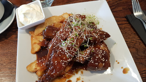 the pork dish was not only flavourless but the pork was undercooked. Once the manager arrived (10 minutes after being asked out by the staff) he proceeded to argue with us that the pork was cooked saying the pink colour was from the bacon. That was fine, however, the texture of the pork was that which is undercooked. Two of us ordered this dish and both were undercooked. the chicken dish, although the chicken was well and truly cooked indicated by the dryness of it, the potatoes were not as they were still hard and crunchy. it took an hour for our dinner plates to be cleared from the table while, at times, up to five staff were standing around the counter talking. once our dinner plates were cleared, the waitress rushed off so quickly we couldn't order dessert or another round of drinks. the manager also argued with the table behind us when it was pointed out that one of the ladies dishes was also undercooked. when we went to pay, another group in front were also complaining about the poor quality of food.