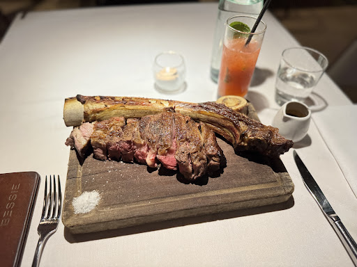Read moreAged steak was sold out, the lovely waitress recommend to give a try on their 800G tomahawk instead. Chef recommend mid rare but I ordered medium with a reasonable chargrilled characteristic on the steak, with garlic and mushroom sauce pair with strawberry cocktail and finish with choc marquise.