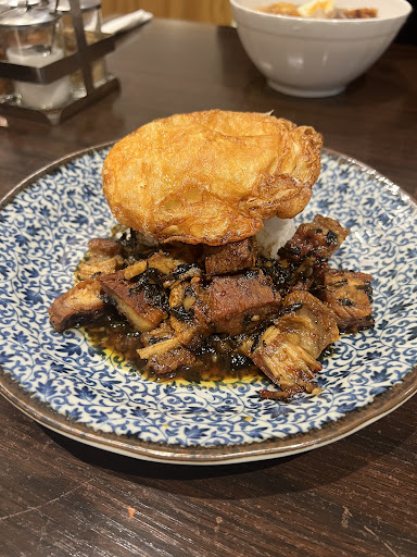 The roasted red pork (moo daeng) was dry and dark in colour—looked old and overcooked. The crispy pork (moo krob) was a tiny portion and seemed like it had been re-fried multiple times. Only the sauce was enjoyable.