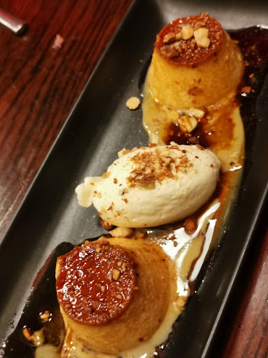 Photos are of our menu choice below: Entrees: -King prawns with salsa -Pork belly (dipping sauce was super good) Mains: -Tbone steak with roast spuds and side salad (can switch spuds for chips) with choice of 2 sauces we choose mushroom and peppercorn -Lamb rack with roast spuds in dripping gravy, side salad and 2 sauces. -Beef rib on mash with dripping gravy -Pan fried salmon with crispy skin with roast spuds in dripping gravy with salsa and greens Dessert: -Chocolate lover - moist chocolate cake with dark chocolate ice cream scoop, strawberries and chocolate sauce (heavenly good đ can swap ice cream for vanilla also) -Forgot the name - was like caramel panacotta with soft meringue and roasted almonds