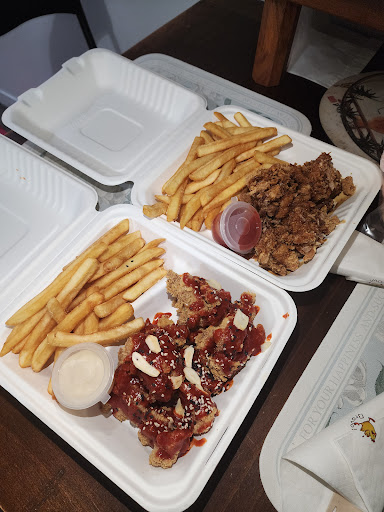 Read moreOrdered Uber eats. We got the Korean spicy, teriyaki and creamy chicken. Chips were OK but no salt. Chicken was cooked nicely but Korean had almost no sauce and not 1 single sesame seed, teriyaki had almost no teriyaki flavour (not enough sauce) and the creamy chicken had lots of sauce in a pottle with pretty much 0 mushroom flavour and was almost like cornflour thickened water with a tiny amount of little mushroom pieces. Didn't dine so don't know about service...