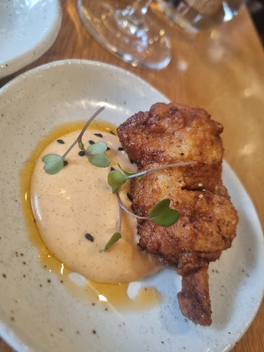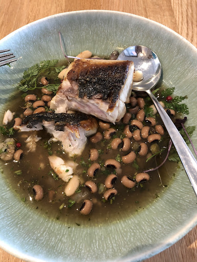 We visited this place for the first time on the weekend. First impression of the restaurant was clean and bright. Nice open kitchen. Wine list is small but my husband had nice red wine. We ordered chicken parfait as entree, presentation was great. Tastes great as well especially cherry sauce was perfect compliment to fatty parfait. Downsize was portion of chicken parfait was way too much compared to how much crackers we were given. We broke those crackers in tiny pieces to put large amount of parfait on it, otherwise crackers will run out very quickly which happened. We had to eat parfait by itself which is quite rich so we couldn't finish it. It would've been better if just few slices of baguette or something come with it as well as crackers to enjoy, or simply just few more crackers or slightly smaller portion of parfait on the plate to have better portion balance. Then we ordered Stake and fish for our main. Stake looked great, classic modern. Nice jus and cooked perfectly, nothing to fault. My fish was kingfish. Cooked perfectly again, nice char crispy skin, moist meat. Taste and the balance of flavor was good, nice bit of acidity in the soup. I must say though i was bit disappointed about presentation and an portion of my meal for $30 lunch. Photo was my meal after i cut the fish but i haven't eaten anything yet. When I looked at all dishes in review photos and also my husband's or people next to us, they all looked good portion( next table had salad and lamb which had big amount of cucumber salad with beautiful presentation and different elements). My fish had beans and soup, all quite soft, no other texture on the plate which was ok at the begging but hard to continue to eat till the end. To be honest, brownish soup with just a piece of fish on top with bit of chervil sitting in the soup wasn't appealing at all. Flavor was good so i still enjoyed it but i would not order it again. Service person was nice, however, would have been better if she communicated with us throughout our dining. Good amount of parfait was still on the plate and we were contemplating if we should finish it or not, then service person came said "did you finish it" and without actually us saying yes or no, she just took a plate and gone. Bit surprised for the service for this type of restaurant, as this is not a cafe. It would've been nice if she came to our table couple of times to check how we enjoy the meal rather than just bring a food and take it away. So overall, flavor of the meal were very good, timing of service was good, inside decor was nice, but we felt some meal and service didn't quite much to the price for lunch. Will we visit here again, maybe. Will we recommend this place to our friends,, maybe. I probably should try chef's choice as reviews are good for that....