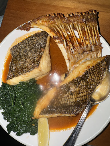 The centerpiece was a whole lemon sole with a smokey sauce. We then decided on eggplant, King fish tartare, hand cut chips and a green salad. After we placed the order my husband commented that he thought the eggplant must be good as he recognised approval on the waitstaff's face. We ordered an extra side and thought it was the perfect amount, as we finished it all and we're not overfill or wanting more.
