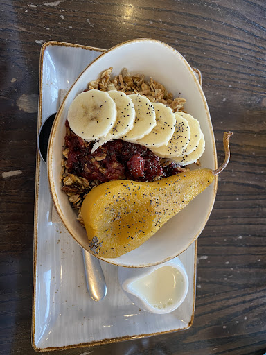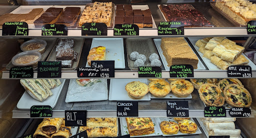 Read moreGood coffee and tasty treats, a breakfast menu, sweet and savoury pastries and special meals Saturday evenings. Vegan treat options that I’ve enjoyed include the raspberry slice, ginger slice, brownie ball and a delectable, apple-and-cinnamon scroll. The scrambled-tofu on toasted sourdough (choice of bread) was very good too, served with dukkah and tomatoes. I’ve also attended a three-course vegan dinner: delicious, leek-potato soup with croutons, lentil shepherd’s pie and sticky toffee pudding with coconut-milk ice cream. Now licensed for beer and wine, including both non-alcoholic and regular Budvar, a classic Czech beer. More seating upstairs....