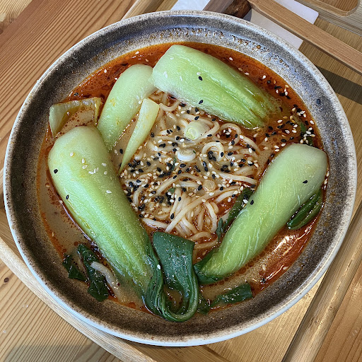 I ordered the Sichuan dumplings (warm and slightly spicy) and a green red bean milk tea. My partner ordered an original Bing and a pineapple bubble tea. The bing was crunchy and contained a very fresh salad with a delicious dressing. We sat for a while and enjoyed the meal while watching the people go by.