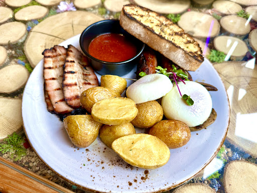 Having had such an incredible dinner experience, I decided to return to Jimmy's Smokehouse the following morning, to try their breakfast offerings. I was delighted to discover that their morning menu was just as exquisite. I ordered Jimmy's Big Brekkie, which consisted of eggs, jalapeno sausages, smoked mushrooms, hand-made bacon, smoked potato, grilled garlic ciabatta, and Jimmy's tomato sauce. I can confidently say it was the best breakfast I've had in Christchurch. The Jimmy's tomato sauce, in particular, was incredibly tasty and elevated the entire dish.