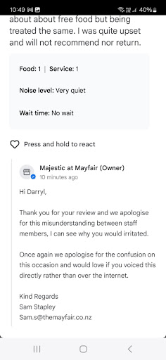 Read moreWe went there tonight at around 8:30pm 7 people wanting dessert and coffee. We were told that the coffee machine is already off and they can serve hot chocolate(well the milk was froth using the coffee machine actually) so we went with hot chocolate and dessert. But my partner really wanted a coffee so he didnt order. There were like 15 people there. Then when our dessert arrive i need extra teaspoon and also more people were coming (looking rich) so while i was standing to get a teaspoon i heard the coffee grinder and the waiter look at me(lol). Then i said isnt that the coffee grinder?he said yes we just opened.i got so upset coz i feel sorry for my partner not having anything they were so rude. We were very nicely dress and we have good jobs for us to be treated unfairly!He said sorry but its too late! They could have went to us and said oh were going to open coffee again maybe u wanna order. But nah we were not important to be informed! Very disappointing experience for tonight! I told one of there waiter and shaking with anger with him. They gave us complimentary dessert and didnt let us pay for our tiramisu but they destroyed our night very bad experience! Also my partner emailed them about the experience and we didnt get a...