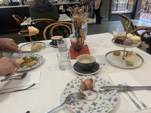 Read moreHigh tea at the Penny Black Victorian Tearoom for Jean and Pat was the most wonderful experience. We went to celebrate a birthday and it was more than we could have wished for. The food was just beautiful with lovely tiers of beautiful food starting with savoury items which included club sandwiches and small savouries, then the next tier had scones with jam and cream and small cakes. The top tier had the most delicious raspberry cream layered dessert which was to die for plus the tastiest little lemon meringue pie. There was a generous amount of food. Two drinks each came with the very reasonable cost of each high tea ($55) and my friend had a pot of tea served in beautiful china and I had a luxurious hot chocolate smothered in whipped cream. After the meal and a chat we both had a coffee. The ambience is lovely, the music inside was tasteful and not loud and the table setting was perfect. The service was exceptional. The staff are charming and did everything to make this a memorable experience. Nothing was too much trouble and we were served quickly and graciously. This was a very happy experience and I cannot recommend Penny Black highly enough. We saw 4 other high teas while we were there, so it is certainly a very popular place situated in the middle of the Tannery. Five stars for the whole high...