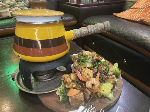 This place is fabulous bar a couple of minor details that dropped my rating on our visit. We were a last minute booking and immediately accommodated. Staff were initially attentive but as the night went on they became very busy & perhaps were understaffed? Our order took one hour & it was just as well there were games as we had children with us! We ordered the fondue & wow just wow - it was just as the other reviews say - it was epic & worth your while! Unfortunately we missed out on receiving prawns on ours & only remembered when we saw everyone else getting them. Staff gave us mixed information as to why we were missed out - we needed to pre order & they’d run out? Another staff member didn’t know why but thought ours looked about right in terms of the protein amount? Yes it did look fine & don’t get me wrong it was delicious but it was disappointing to have not received the prawns as part of ours (2 were ordered at our table) and to have not been notified on ordering it shortly after of the situation. The kids loved their food & it was presented beautifully. Adults drinks were great but unfortunately the lemon lime and bitters we bought for the kids was terrible & I’m not sure why they drank it as it tasted like soda & lime but they left it too late to tell us. Anyway, it is a great venue with great food & a cool atmosphere, just be sure to make sure you receive what you order & that the staff action any thing that’s not...