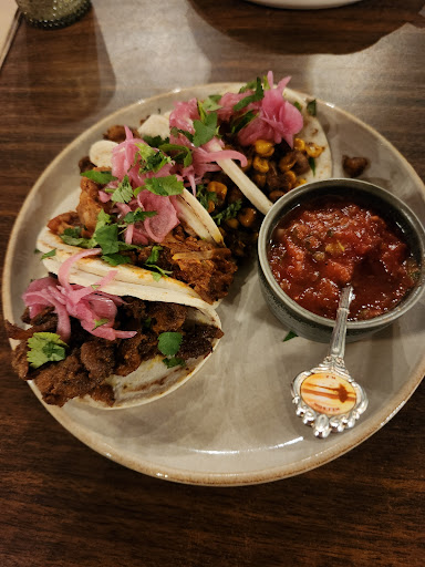Read moreWent here for the first time with family. Was a very cold day and it wasn't the warmest in there never took my coat off. Pretty nice big open space with lots of plants and a old truck. Had chips and salad with chorizo, cheese, chickpeas and hummus to share. These were both really good and tasty would definitely get the salad again. Was excited for the tacos, They are small so would need at least 6 each. Had the shredded beef and vegetable one. They were ok pretty bland flavours not what I was expecting just needed something. Then ordered dessert. I had the date cake. I did not enjoy this at all, the cake tasted dry and stale, it was smothered in lots of very sweet toffee sauce with some kind of sweet yogurt, I couldn't finish it. My son had the orange truffle and he couldn't finish it either way too sweet and flavours just not good. Will like to go again and give it...