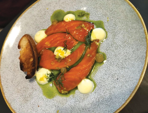 Story is a most excellent restaurant. They have a 3-course set menu they change every week. This week we started with an excellent salmon and juniper dish. This is a classic west-coast USA salmon combination executed perfectly, and the chardonnay pairing was just wonderful! The second course was a duck a l'orange to die for. I have always loved this dish, and made it several times myself - they executed it perfectly. But for me, the best dish was the dessert. It was a magnificent combination of lemon curds, tiny dollops of cream, pear puree, two types of biscuits, and two types of meringue. Each part of the dessert was delicious, but put together it was truly sublime. It was so good that while I sipped the dessert wine - which as excellent - I quickly decided to have sips of water to separate the wine and the dessert as there is no wine that could possibly match the quality of the gestalt experience of eating that dessert. My wife and I will be back, and I recommend anyone go visit...