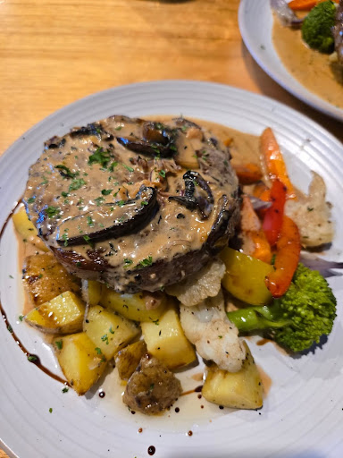 Ordered the steak and both times it was cooked perfectly It was also a big steak 300g for $34 it's certainly good value The veg accompaniment was delicious I tried the pasta tonight and it too was yummy (sorry about the pasta photo but it was so yum I forgot to photograph it before I ate it 😋)