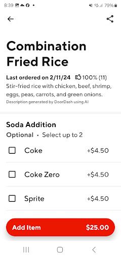 13/11/2018 - We went there for dinner as the kids want to eat their sweet and sour pork, which is quite good and delicious. We decided to try something different and we ordered the two different soups; chicken corn soup and spicy sour vegetarian soup. The soup come with one size (except for the dumpling soup which comes in two sizes). The chicken corn soup's texture was thick and strong with the chicken flavour (which is a good thing). The texture for the other soup was also thick but not spicy enough.