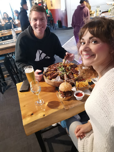 Service is friendly but waited awhile ordering the platter for 2 off the smokehouse menu. The Waffle Fries and Sausage is what I enjoyed. Everyone's Burgers looked amazing I think they enjoyed them? You have to go to the bar and order your food. They don't have a person coming to your table to take orders. Looks like there were only a couple staff serving...