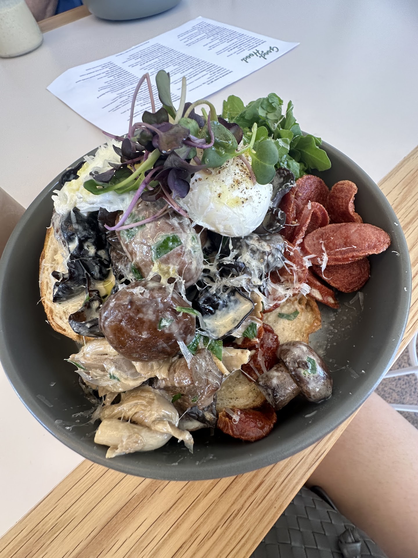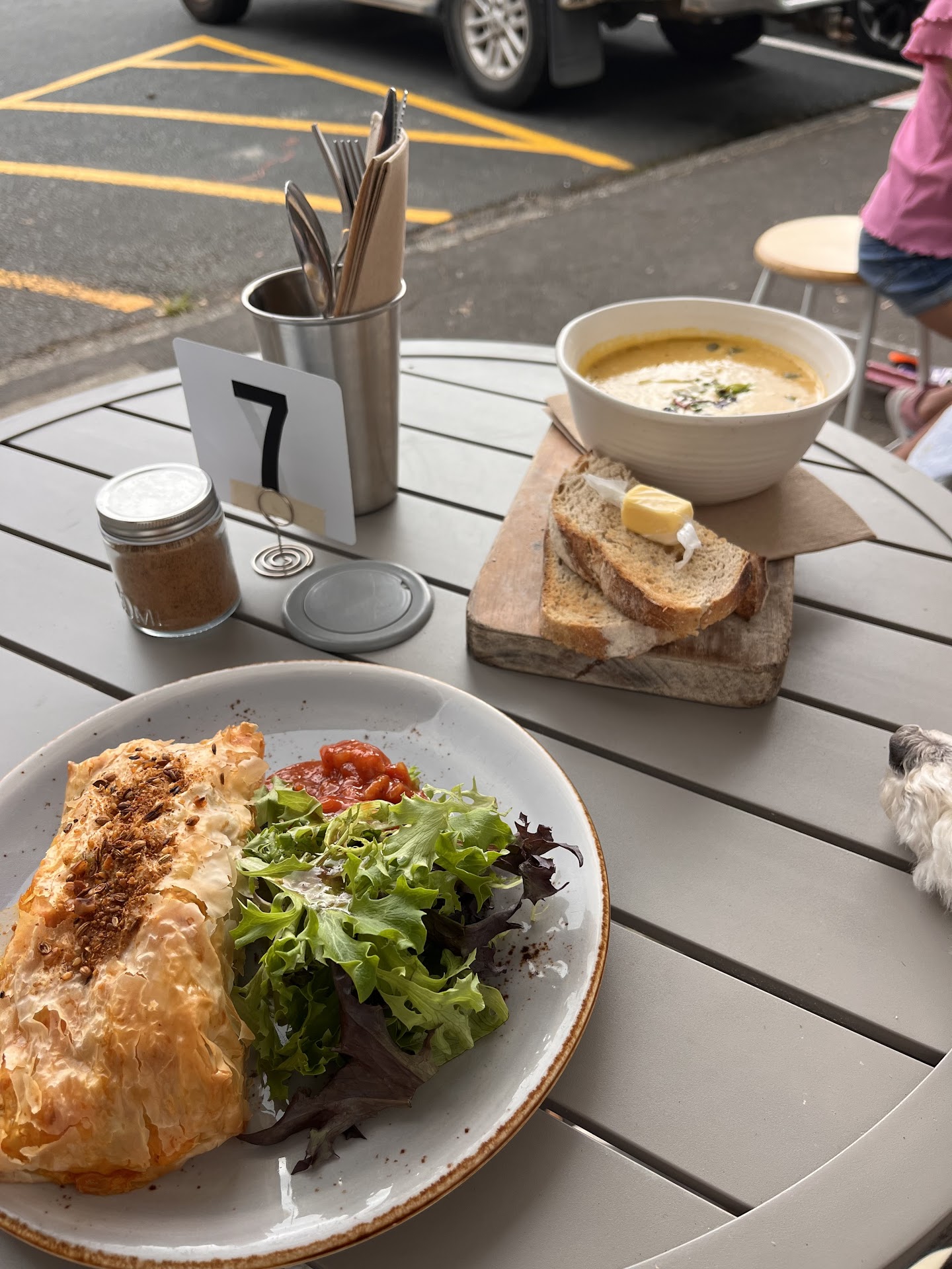 Read moreEverything you can ask for in a little neighbourhood cafe! We live just across the road and couldnât be happier with Good Hoodâs range of cabinet food and their full menu. Thereâs a bit of asian influence in the dishes which sets them apart from other cafes around the area. Iâm big on zero sugar alternative barista milk but their milk will do for now as the Supreme coffee beans is our fav. Delish. We had the pumpkin and ginger soup of the day and the vegetarian filo - both just right in terms of seasoning and flavour. Thank you for blessing Castor Bay with a doggy-friendly cafe that has all the vibes of the trendiest cafe in Auckland. Wouldnât mind if you turned the music...