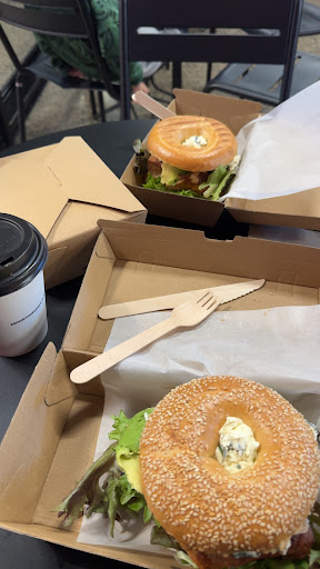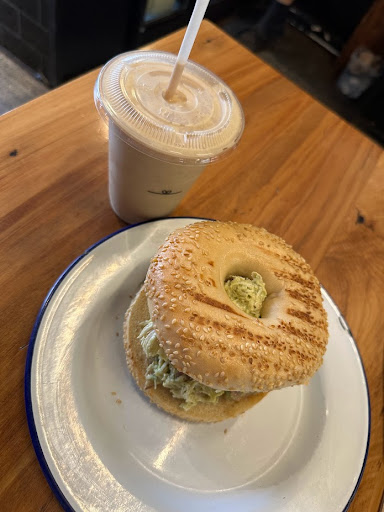 Read moreSHOUTOUT to the bro working on the coffee machine with the moustache, what an epic dude who has gotta be the best customer service I've ever had??? Drinks were amazing, bagels were amazing, service was amazing, actual 10/10. Oh and the CAB bagel (chicken, avocado, bacon, not citizens advice bureau) is the BEST (I want another one now). I got the peanut butter smoothie and it was so good on a hot day, partner got a coffee and said it was...