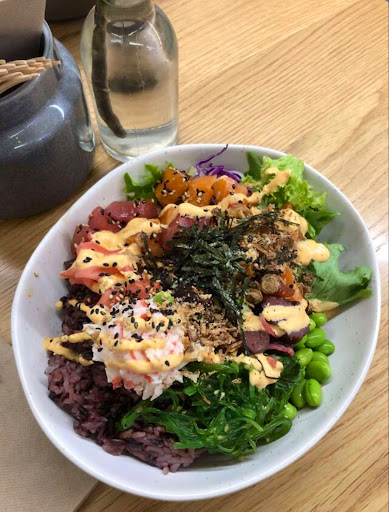 Was recommended this place-originally new market one but that’s closed now so had to put my two cents somewhere-by a friend and wow long story short: best bang for your buck poke place! My bowl consisted of: Purple rice and salad 2 protein tuna and salmon. Toppings: edamame, seaweed, crab surimi, ginger, pickles. Finishing a: Kimchi mayo with sesame, fried shallot, seaweed. For the portion size, the price is extremely decent, even though the fish have a 50 cent extra charge, my meal only ended up being 14.90. I'm so surprised and happy with the meal and the quality of the sides. The tuna and salmon were both well marinated with soy, soft and fresh, and decent serving size. The toppings complimented my meal very well, especially the ginger and pickle which added strong taste and the shallots were super crunchy adding that wonderful texture. Personally the rice was a bit too overdone, most of it was too soft and mushy-that's the only con I have. Otherwise, you can't beat it...