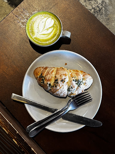 Speaking of - the food and drinks. Presented beautifully, you can tell they have skilled baristas and hospo workers at this establishment - you can see that it makes for very aesthetically pleasing photos. But Christ was it a disappointment to consume. I ordered a hot matcha with alternative milk (i believe I ordered coconut, idr this was like 2 weeks ago, iâve just neglected writing a review) and a slice of the bulgogi frittata from the cabinet.