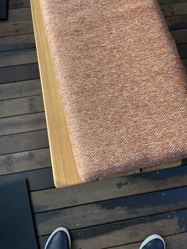 The other disappointment was that the outdoor area had cloth covered stools out in the rain.. Right.. Nice organisation. Could they not put these undercover and put the wooden ones outside where it would not matter? Perhaps it could be explained by part of the roof not covering where they were.
