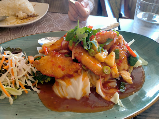 We ordered the spicy basil crispy pork and the spicy fish dish which came with 2 rice. The mains were quite bigger portion than I expected. Both dish full of flavour and the spice level was lower than expected since we ordered medium. The snapper was really good texture, not too dry as well, slight crisp on outside. The sauce on both dish definitely needs to pair with rice as it is quite strong in flavour. Fish dish was slightly better than the pork but both were very good. Service is very good, owner is nice and refilled our water before we even finished it.
