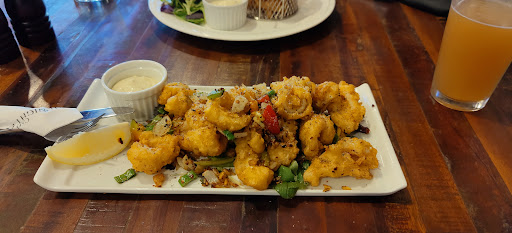 Giving 4 stars, but that's really only due to the friendly staff. They were great. However, the Margarita pizza was a sad affair. It was soggy, lacking flavour and swamped in cheese. Sadly, my orange juice was mostly ice and that makes for a very expensive drink. I had the salt and pepper prawns, and they were actually delicious. At least they were until I unwittingly chewed one of the two whole chillis that were left in the meal Yes, whole, complete chillis, buried in the salad which came with the prawns. Suffice to say, my tounge is still tender over 24 hours later. I can only imagine that the chillis were used to add spice to the prawns and that the chef simply neglected to remove them before serving. It wasn't even vaguely funny and I wish I hadn't paid for the meal. I can only suggest that if you order this dish, look out for these incredibly hot little surprises. Wish I could say something more positive, but it...