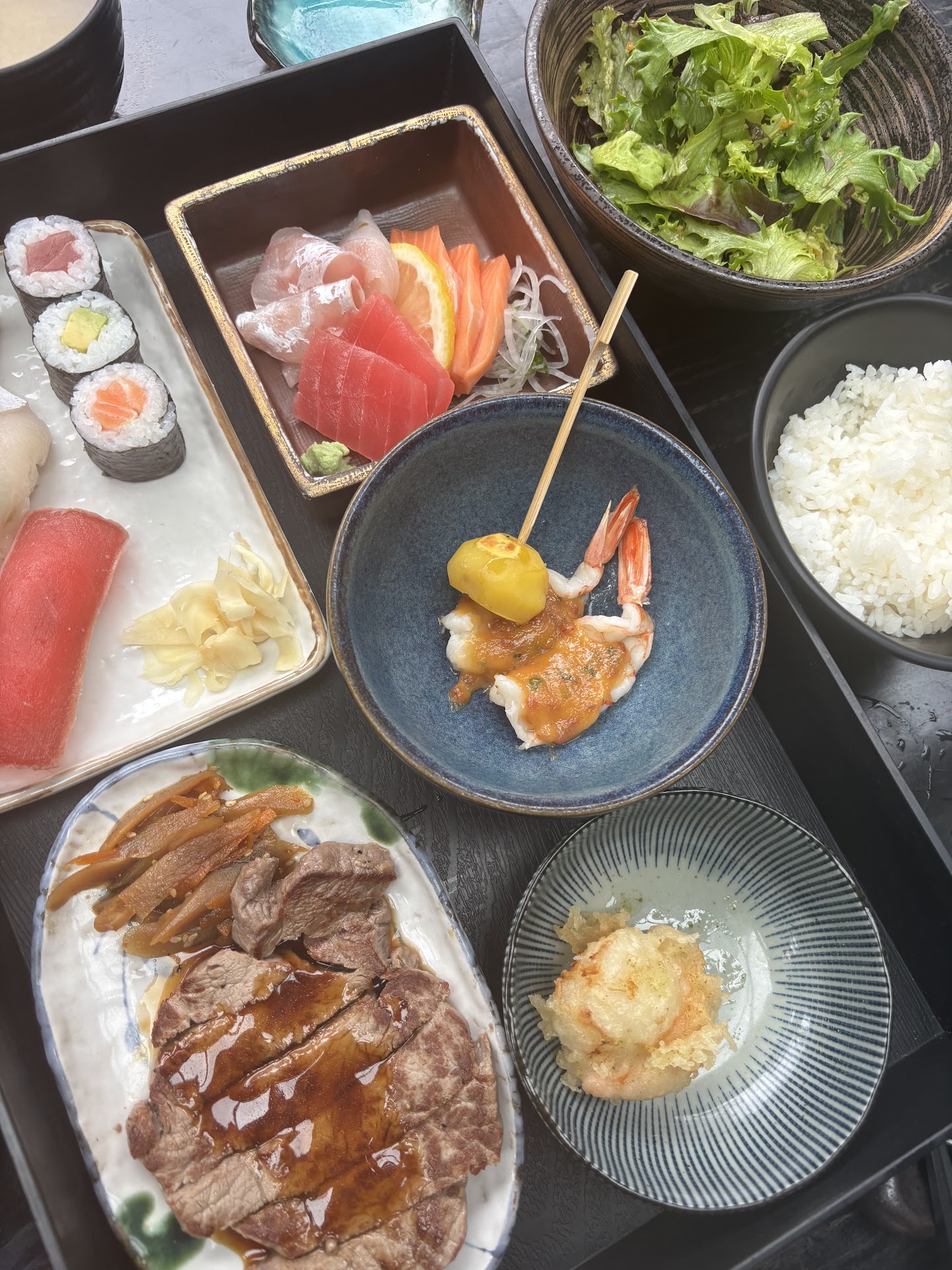 Nigiri and sashimi platter for two: 1/5. They looked fresh but way too much wasabi was smeared between the fish and the rice that all we could taste was wasabi… salmon sashimi was terribly sliced- it was so thin and ripped. Not professional. There was no salmon nigiri which we didn’t expect. We started the meal with a huge disappointment. Aburi nigiri: 1.5/5. Again, waaaay too much wasabi between the fish and the rice that we felt tortured eating them. We couldn’t enjoy the taste of the fish.
