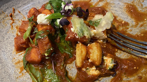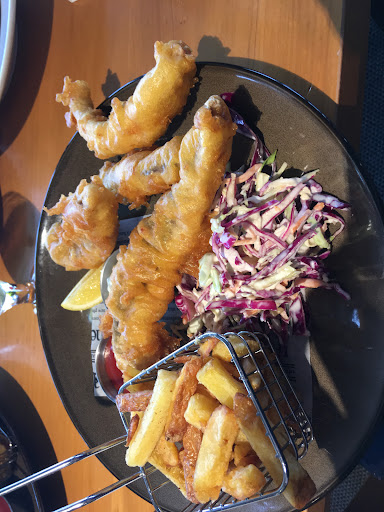 The atmosphere was very cozy, and the food was delicious. I got the 55 day aged sirloin with garlic butter and duck fat potatoes, and my wife got fish and chips. We also split risotto balls. Very tender steak cooked exactly right (med rare because I’m not a heathen). Also if you’re around during the winter, the home made mulled wine was delicious! Don’t forget the brandy!