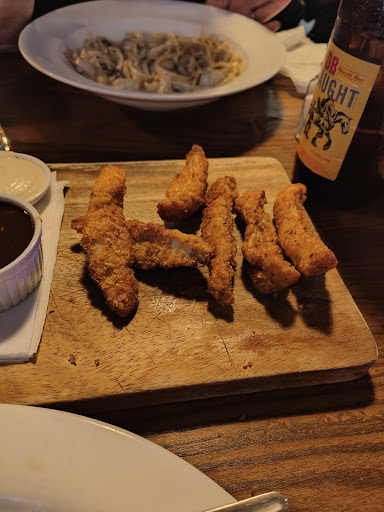 Went here with family, table for 6. Was a lovely atmosphere untill we mentioned that the 6 tender strips only came out with 5. The reason for mentioning this was due to our party of 6 to have one each. When we received the amended tray the cheff on duty had just cut two strips in half and sent them back out. I approached the manager who said it is because the chicken was large and so you get less. I would have accepted this information if it had been given during the order, but being that we had sent it back and received cut tenders in return were frustrated with the attempt to lie to us. After a while our mains came out, they were nice in flavor and good portion. But mid way through the meal the manager on duty brought out 3 half tenders double fried and a side of mayo (a substitute for not having aioli) set it down and smugly stated here are your chicken tenders. We decided shortly after he left that we were unsatisfied with the service, treatment, and state of the dining that we wanted to return the entree and head off. After a discussion with the manager again we were refunded for the entree, but the conduct he had and the confrontational approach he took for what equates to a chicken nugget was outrageously disproportionate. A final statement from him for us to cook our own meal instead of supporting a local business was quite unwarranted. Overall the majority of the staff were kind and hard working. But the manager and a couple of the staff were unacceptably rude and confrontational. Lastly the manager tried to intimidate us in to leaving sooner which we decided to instead enjoy our drinks before leaving.