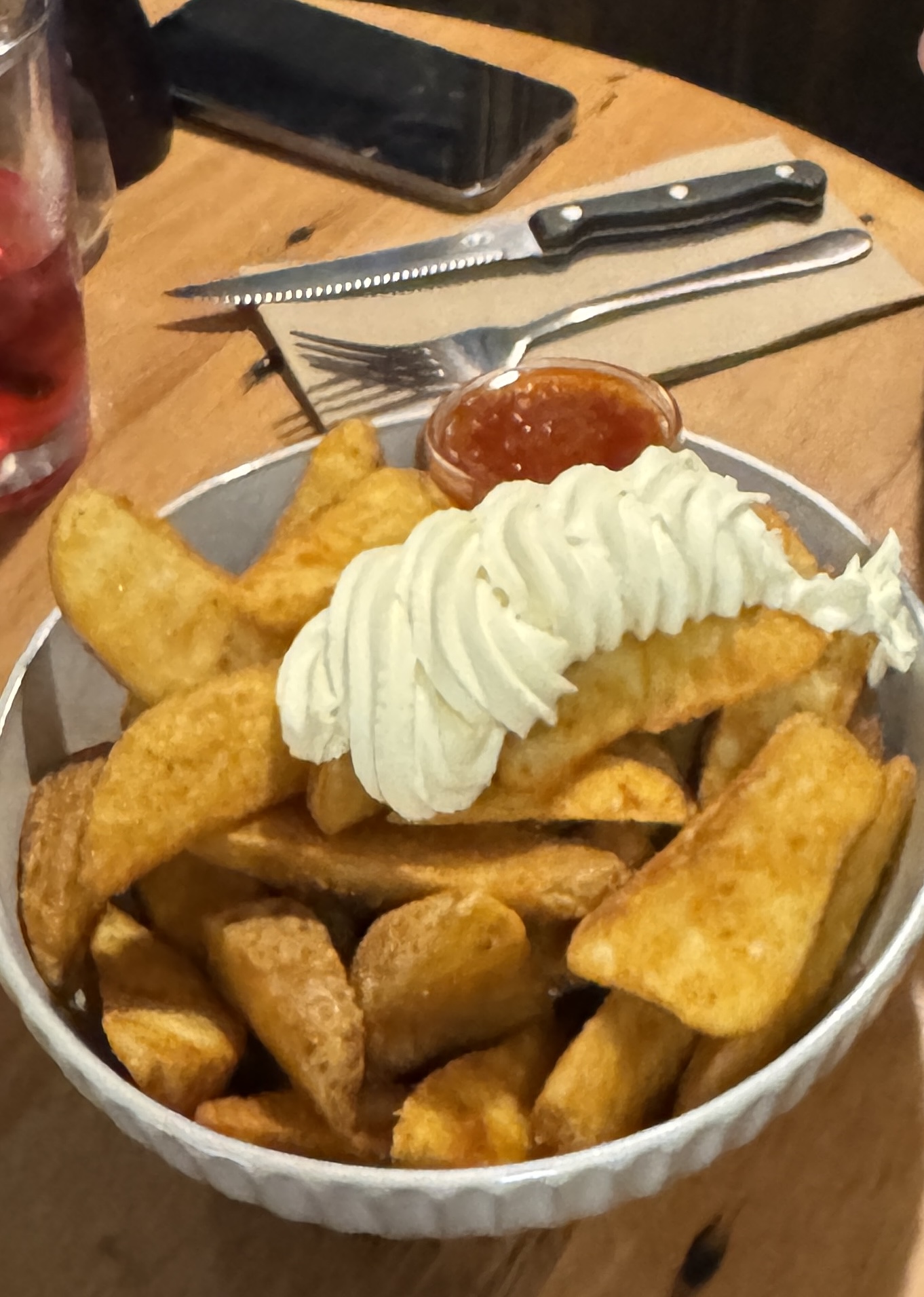 Arriving at 5:45pm Waiter got us to a table straight away, ordered fairly quickly unfortunately there was miscommunication and we were provided Wedges with Bacon when we had ordered Wedges with Sour Cream & Sweet Chilli. My Husband had notified them there was no apology from the waitress and she had just taken the bowl and left giving them to her staff members at the back.