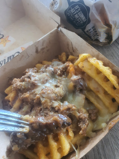 They picked a nice spot near a gas station. And the inside looked very nice, but it was dirty. Almost every table was dirty, and because I didn't want to sit on a table without back support, we settled for a less dirty one. My family got 4 burgers (all pretty good) and 3 fries and 1 onion wrings as well as the bacon ranch crisscut fries (which was pretty good). The fries also came with an amazing tomato sauce. We also got 4 drinks. This was at a great price of about $50 (according to my dad). This is such a great price that I am assuming this was some kind of deal. The service was alright. But again, the dirty tables bring this down. According to my dad this Carles junior doesn't have a lot of budget and you could call it a smaller fast food shop and we got a tray as well our burger wrappings to eat the food in but the tables should have still been clean. Their is an abundance of tissues. There is no diet coke, only zero sugar coke, which I'm told has harmful chemicals.