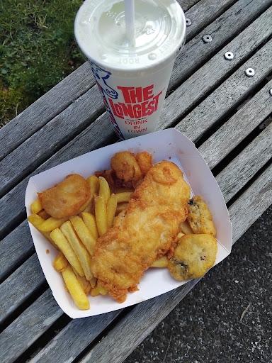 ย ย ย Read moreReading the other reviews I am giving them 3 stars because they obviously do fish and chips well. The cakes and slices cabinets was the worst presented I've ever seen and I didn't fancy buying anything out of them. They slices were mis-shapen as was was the solitary chocolate cake. On the plus side they served my tea in a mug, the way I like it. The location is great and they have plenty off covered seating: perfect as it is day of heavy Auckland rain. It's too early for dinner otherwise I would try the fish and chips. I am sure they would meet the standard described by everyone else but the bakery side use...