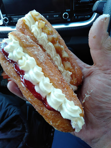 The doughnuts were a treat & very one-sided I ordered 10 for the trip back to Napier 🤔🤔🤔none made it back The.PIES all.made it back...