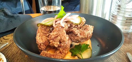 Read moreWine and cocktail bar. Informal dining with spaces inside and out on the large lawn area. Share plates. Tomato salad was delicious. A definite stand out with red pepper sauce tasty of chargrilled pepper and almond goodness. Most food was overcooked but still tasty. Arancini balls deliciois