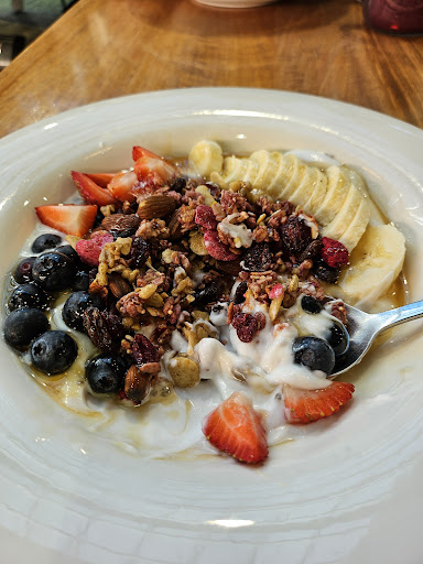 Read moreSet in a large garden centre gift shop, this cafe is bright & cheery. Theres a good selection of fresh food, ranging from cabinet food to a set menu. I came to celebrate my birthday last week & enjoyed what I had so much, i dragged my family back for brunch on Saturday. I had the Waffles with Deep fried crispy chicken, bacon, & Chilli Maple syrup. YUM!!! The other members of our party had the omelette, Eggs Benedict with salmon, & the Angus Burger. All said that they really enjoyed their meals. One comment that was made about the burger was that they felt that it would have been better if it wasn't in the oh-so-trendy sweet...