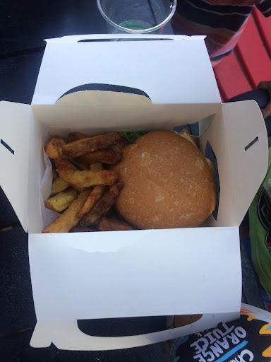 The girl on the phone re Order/ who served us at the counter upon our arrival - was lovely. We waited for over an hour for our Burgers - we were assured they'd be ready by the time we arrived. NB: Several other people were waiting before we'd arrived - more once we were there (once we'd arrived I over heard a girl say she was over waiting 40mins for her Burger).. At peak hour - the guys in the kitchen were working at snails pace; they seemed unbelievably like it was all their first day prepping food ever - fumbling around, looking like possums in the headlights... Their pass is extremely close to the counter - both the girl at the counter & the guys in the kitchen consistently smacked things off the pass.. The pass is shockingly narrow - the guys in the kitchen, when attempting to put the prepped food on it, the containers and plates were pushed off.. plates crashing off the pass, Burgers in their boxes, boxes prepped to put the Burgers in would be pushed off including the phone; it was embarrassing. Some work on that needs to happen fast. *The Burgers smelled good however, when opening the box for the Gone Fishing Burger - it wasn't properly cooked & was really 'fishy', it stunk.. (fresh fish doesn't have that smell). The Burgers seemed as though they were slopped together.. overcooked chicken in one Burger & the beef pattie in the other Burger was overcooked as well - no love was put into preparing these Burgers! *Giving 3 stars is generous, it was our initial selection... we give 2 stars instead. This was the first time we'd eaten Gone Burger's food (it's now the last), to be frank, we were disappointed. Being Foodies & having high expectations on food we buy when eating out, isn't the problem; the problem is not getting exceptional food you 'think' you're going to get.. nor bang for your buck. *To get decent Burgers, for us now means travelling all the way to Ralph's Eatery in Auckland or Tuckers in Tirau, more regularly - it's worth the cost of petrol & spending a bit more on the product because we know the food is...