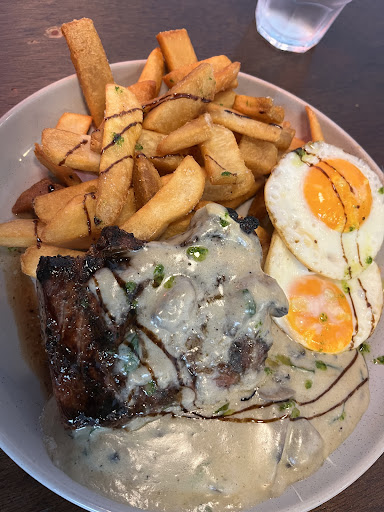 Read moreCame here for lunch and got the Steak and eggs, Buffalo chicken wings, and a side of surly fries! The steak was topped with some creamy mushrooms which were great and the portion of steak cut fries was very generous (I think it was fried in beef tallow too judging from the beefy flavor). The buffalo wings were delicious, and the spice had a tangy taste to it which we really enjoyed! The overall portion was generous and we couldn't finish the curly fries (we got a small size but it was enough for the two of us). The only slight negative was that the steak was slightly overdone (we got more of a medium rather than a medium-rare) but everything aside from this was great! Would...
