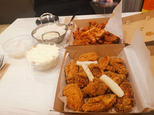 Very very disappointed of the service. We were so excited to try it as we heard from friends it is the best Korean chicken in town. Did the online order at 4.30 pm Saturday evening and the pick up time was 5.15pm. We got there at 5 and got told they were making it according to the pick up time. Totally fine with that. While we wait, a lot of people came do pick up or dine in order. Even the ones ordered after we arrive have got their meals. I checked with the lady at 5.20 which was passed our pick up time, she didn't even check just answer me it's not ready. 5mins later she saw a bag in the corner of the table which was mine and it's been there at least 15 minutes, because I saw she packed that but didn't call any name or number. She did call for every other order though . It's wired and I got very upset being treated like this. She only said they were busy and sorry but sounded she didn't feel sorry at all. Food was nice and crispy, I would give it 4.5 stars, a bit salty for us, would be better to go with rice. But I wouldn't go there again for a while because of this experience. I hope they will train their...