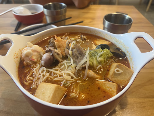 This place has a decent selection of seafood, noodle and vegetarian ingredients, and quite a few different broths at a reasonable price. We went with the collagen bone broth which was flavourful, clean and had good body - you can also choose your spice level as well. Our food came out quickly, the staff member who served us was also super friendly, and let us know they had specials on the night that we went. The only downside is they're a small restaurant and you might not get a table right away - otherwise a great place to get a big comforting...