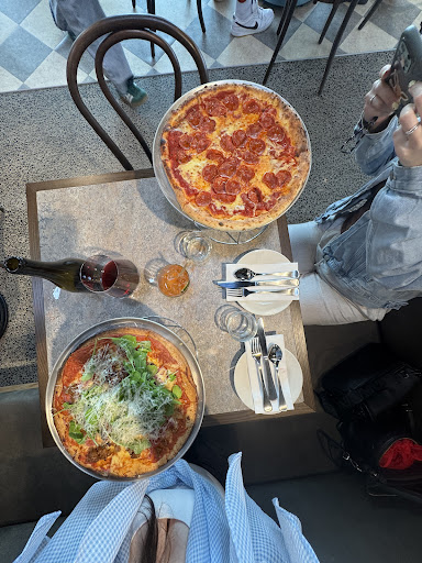 The pizza, though, fell flat. Admittedly I prefer a Neapolitan pizza over a New York pizza, but good pizza is good pizza regardless. I am sad to say this was not good pizza. The base was thin and firm (almost too firm) with a good crisp, but the dough was strangely "heavy". For the margherita (always the bar), the balance between tomato base and mozzarella was off; we could barely taste the former, and the cheese became rubbery rather quickly. There were no options on the menu using bufala or Fior di Latte mozzarella. The pepperoni pizza was especially "heavy" but was not overloaded with toppings.