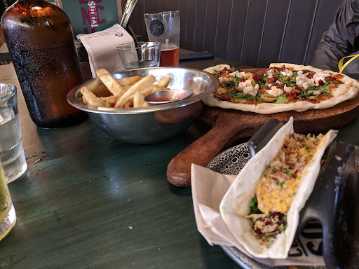 A few points, my food took a half hour for an entree and a main, which is where I'd be getting to the beginning of annoyance, I would understand if not for the fact that the pizza mostly tasted like ranch with a very vague hint of chicken and bacon, and the crust resembled a soggy toasted English muffin. You could taste the potato skin on the wedges which I could eat but wouldn't say I was fond of. The aioli served alongside the wedges was very mild, barely resembling garlic.